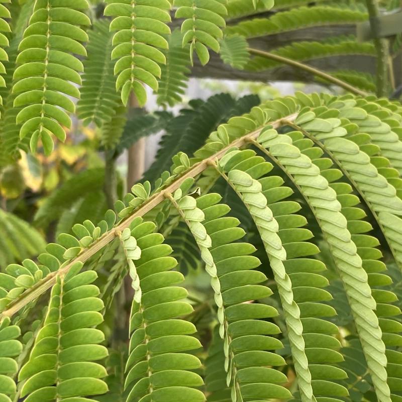 Albizia julibrissin Ombrella, Silk Tree, Powder Puff Tree. Deciduous, exotic-looking tree with delicate green, feathery leaves and pick/white fluffy flowers in summer. Full sun, well-drained soil, sheltered location. Protect from cold winds and frosts. Drought tolerant once established. Full height, 3m+.